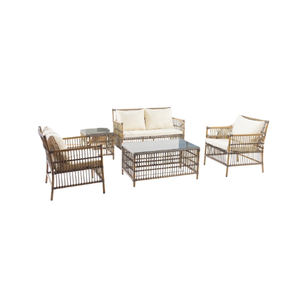 – Set con divano + 2 poltrone2 tavolini con piano in vetro